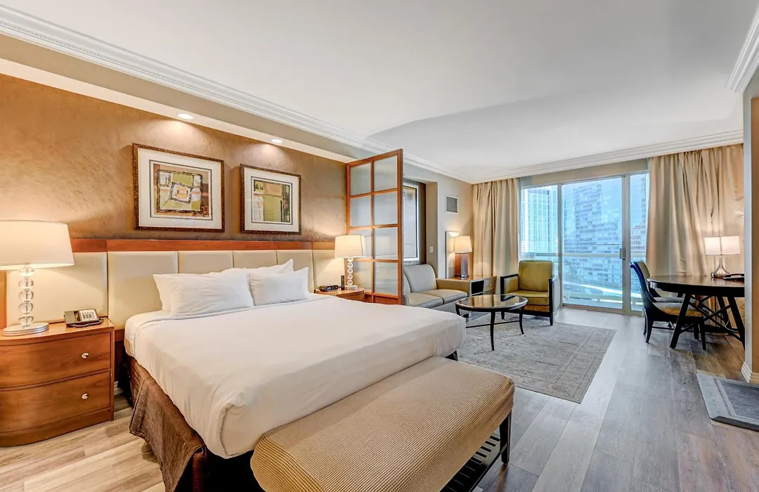Balcony Studio Signature Mgm Great View No Resort Fees Free Valet Lazy River ラスベガスはラスベガスに位置し、ホテルミラージュ・火山噴火ショーから歩いて25分です。プールを提供しています。 このサービスアパートメントは無料の専用駐車場もあります。